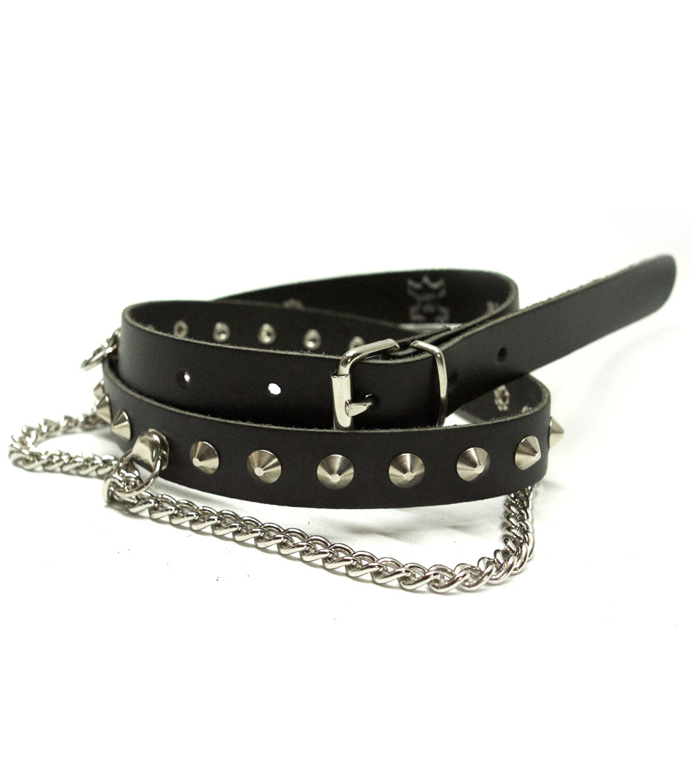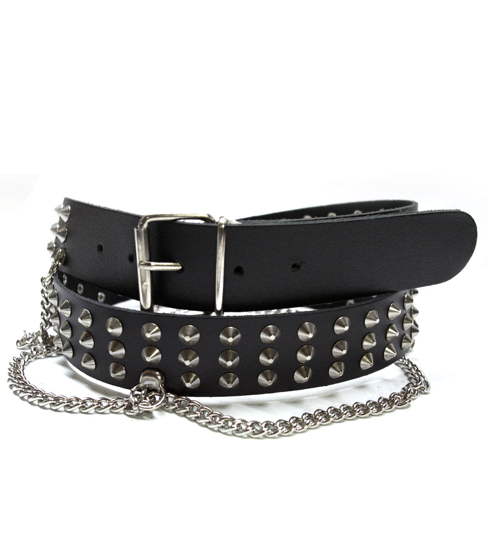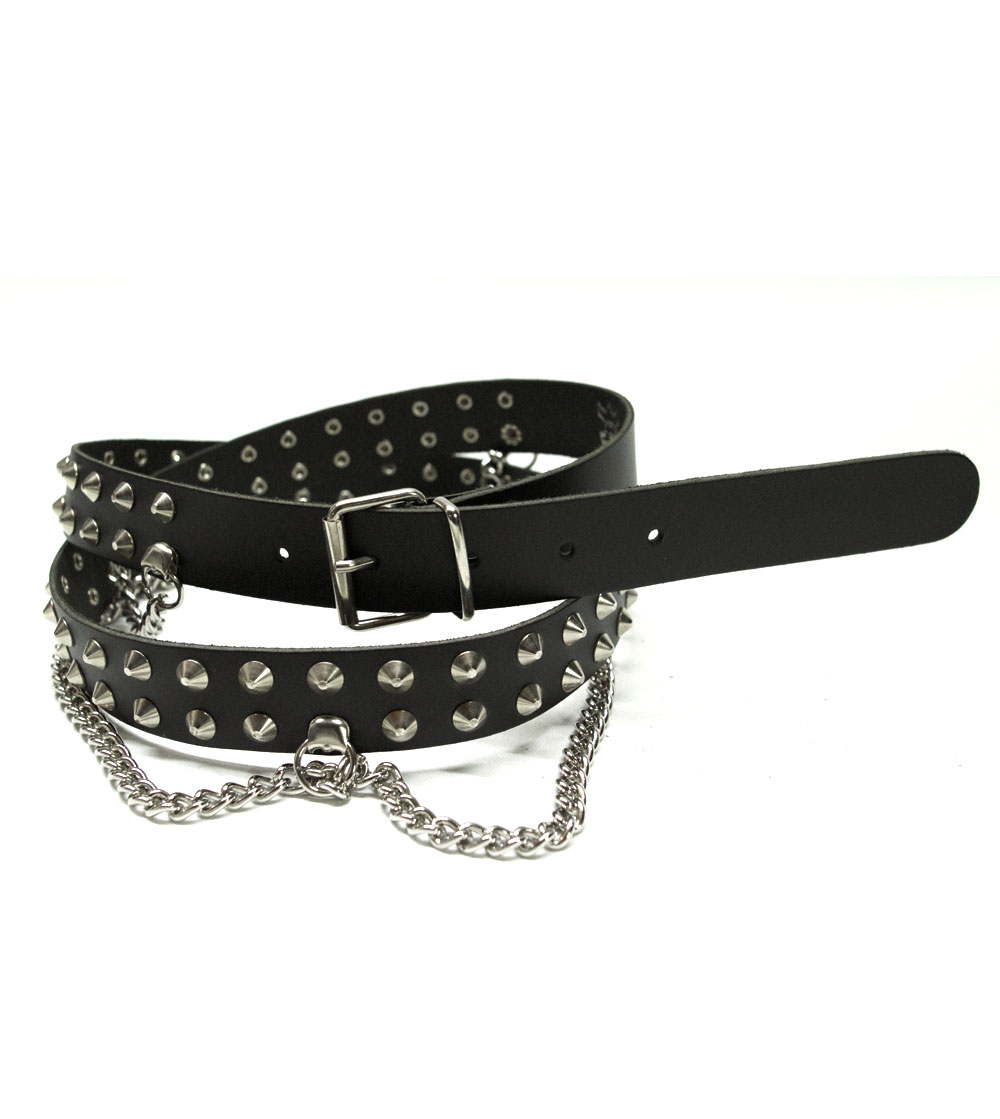 Leather Belt pointed Studs with chain